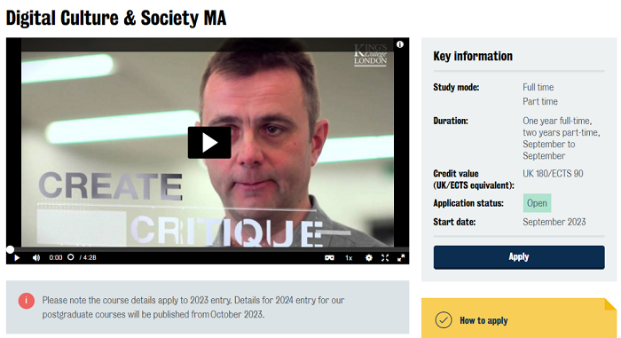 KCL的Digital Culture & Society MA為學生提供了獨特的機會來批判性地研究數字技術的發展和對當代文化和社會的影響,著眼于數字發展如何重塑各種社會政治和經濟領域,例如工作、治理、身份、文化傳播、金融、工業等等。