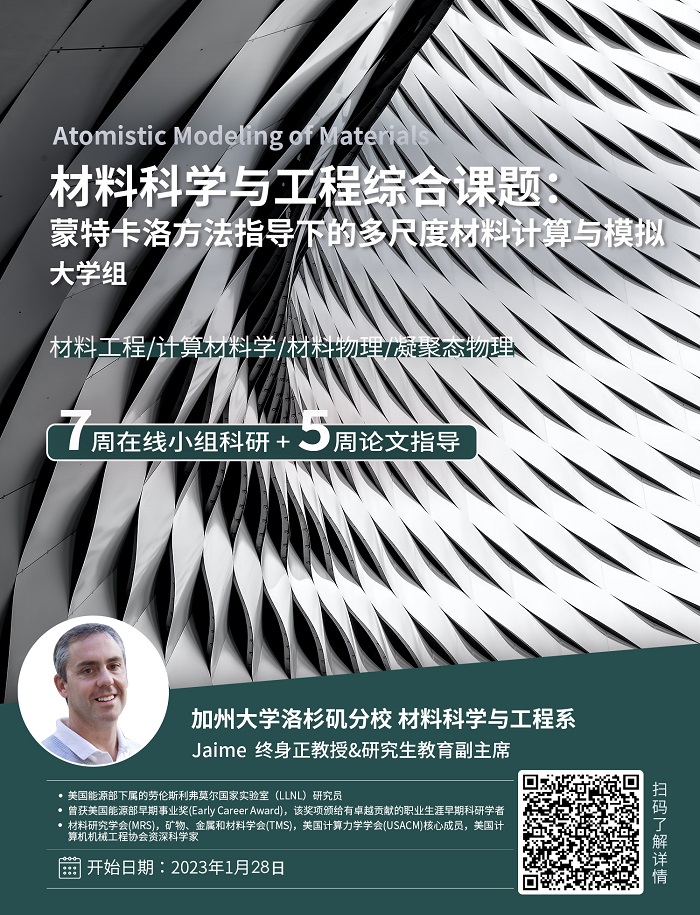 2.項目主要涵蓋材料物理學的基礎理論及相關概念,重點講授分子動力學、蒙特卡洛法在材料科學中的應用,引導學生進行原子尺度的材料基礎建模。