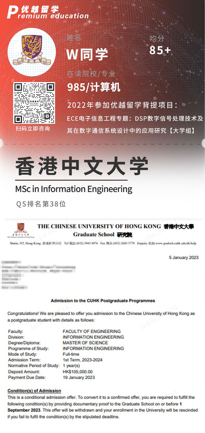 2023offer:恭喜W同學獲得港中文信息工程碩士通知書。